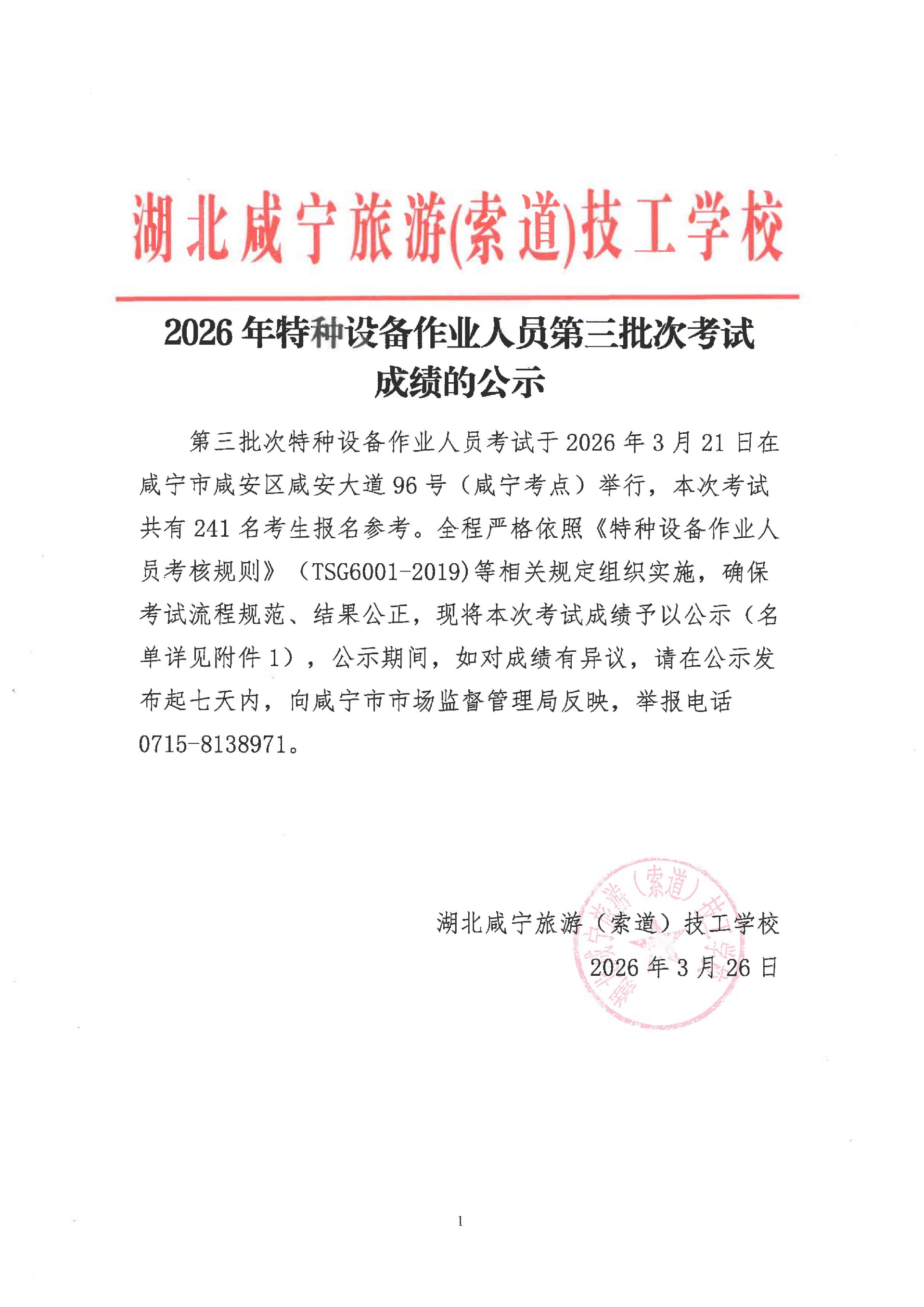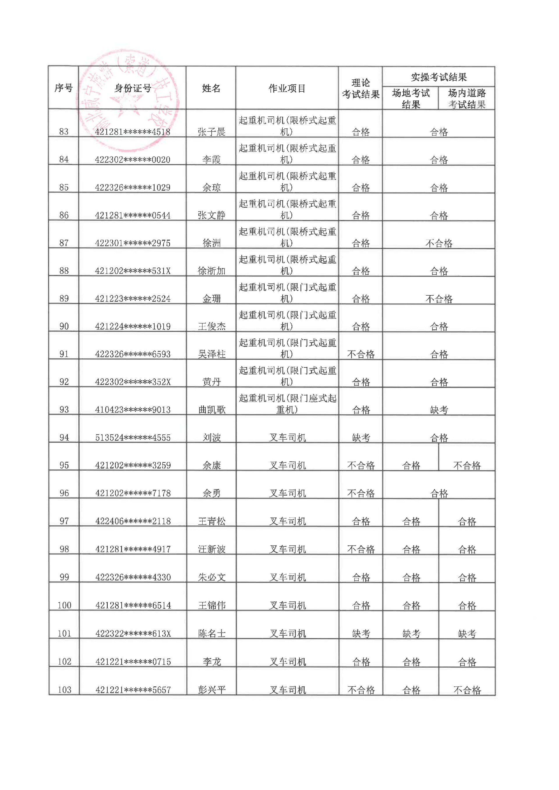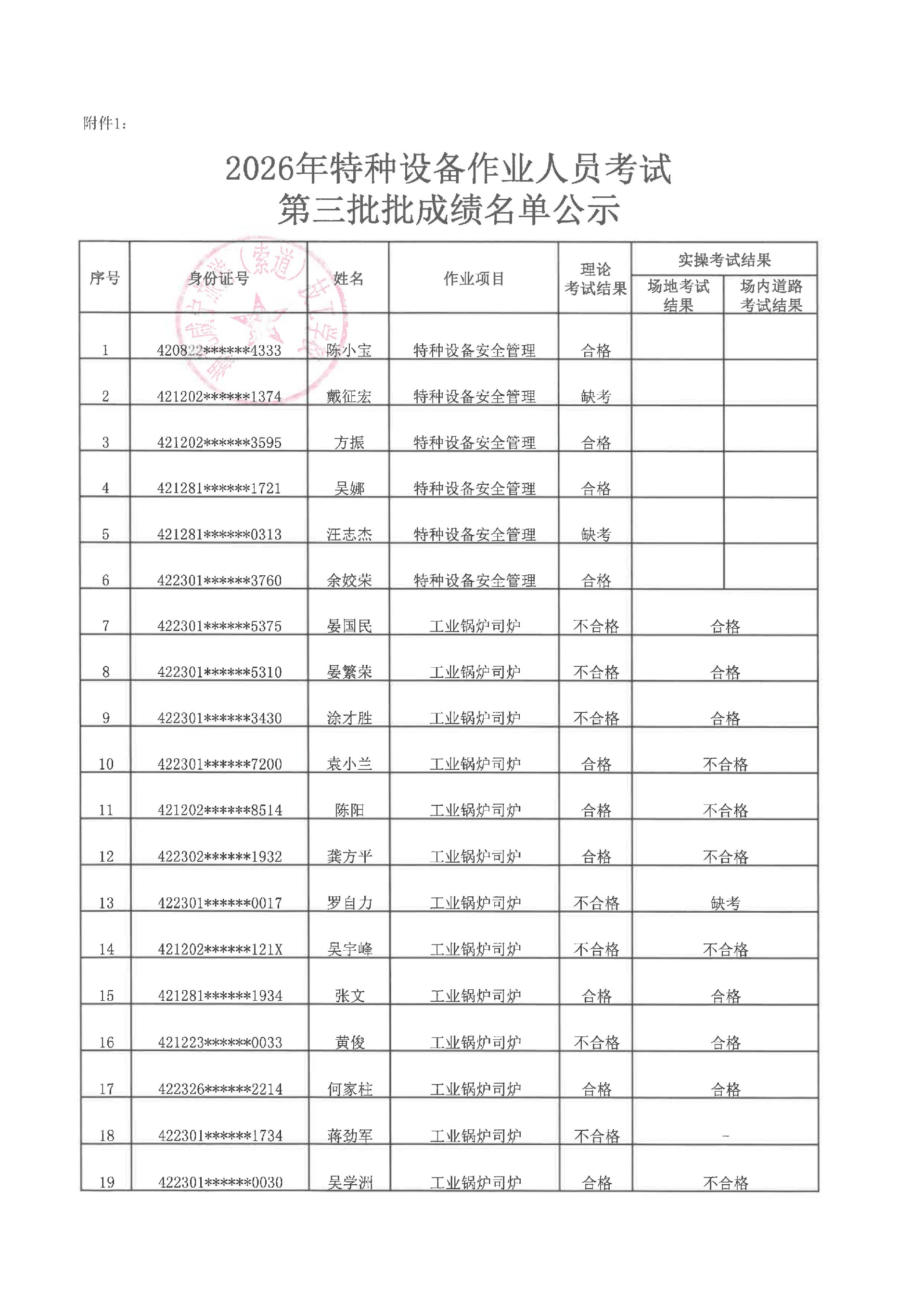 2026年特种设备作业人员第三批次考试成绩的公示