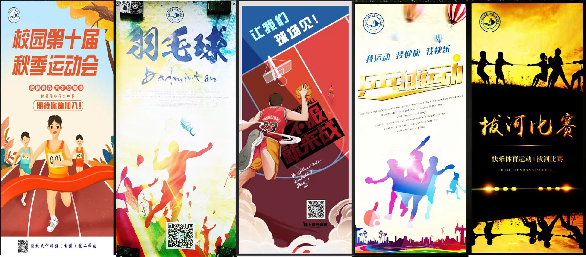 1) 制作运动会宣传海报、横幅等,营造氛围。