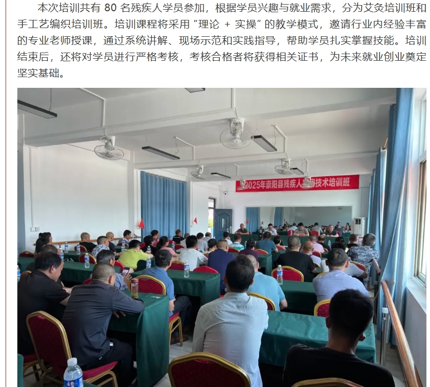 技能点亮希望 爱心传递温暖 ——2025 年崇阳县残疾人实用技术培训班在我校顺利开班