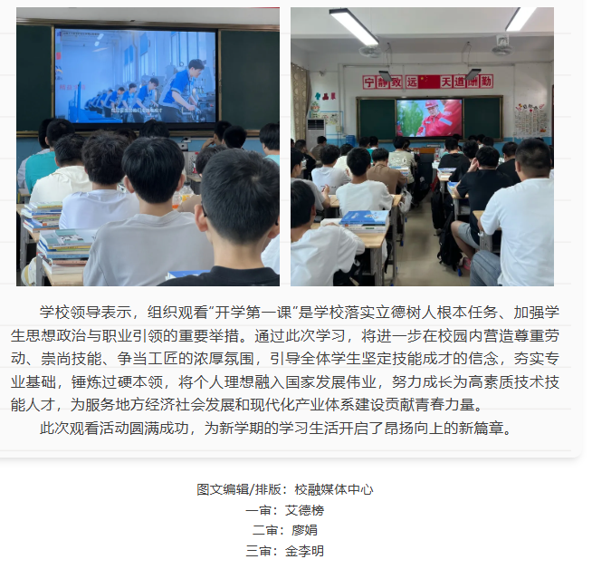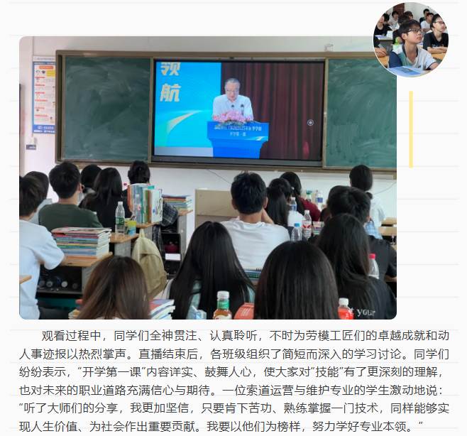 技能照亮前程 劳模工匠领航 | 我校师生共同参与湖北省技工院校2025年秋季“开学第一课”